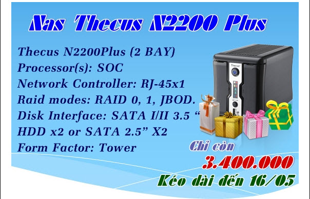 Khi mua Nas Thecus N7710-G bạn sẽ được tặng ngay Nas Thecus N2310. Nas thecus N7710-G với cấu hình vượt trội: Intel® Pentium® G850 Dual Core CPU (2.9GHz),4GB DDR3 ECC RAM,1x 10Gb Ethernet port,Enterprise level performance for...
